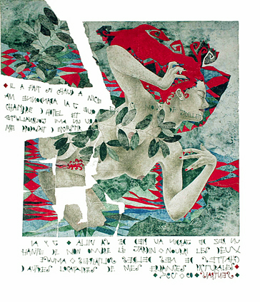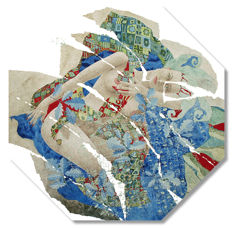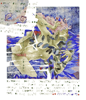 eu à peu la figuration humaine s'honore de nouveaux attributs, et sans délaisser le dessin aveugle et le fait de déchirer une image finie pour en constituer l'œuvre définitive, j'évolue vers davantage de fluidité, tentant presque douze ans plus tard d'abandonner le questionnement psychologique de mes modèles féminins pour de nouvelles évidences. En 1986 j'émigre dans le Sud de la France et séjourne longuement à Nice où s'accomplit une lente métamorphose qui m'oppose dès lors aux modes picturales majeures. La découverte de l'espace culturel français -